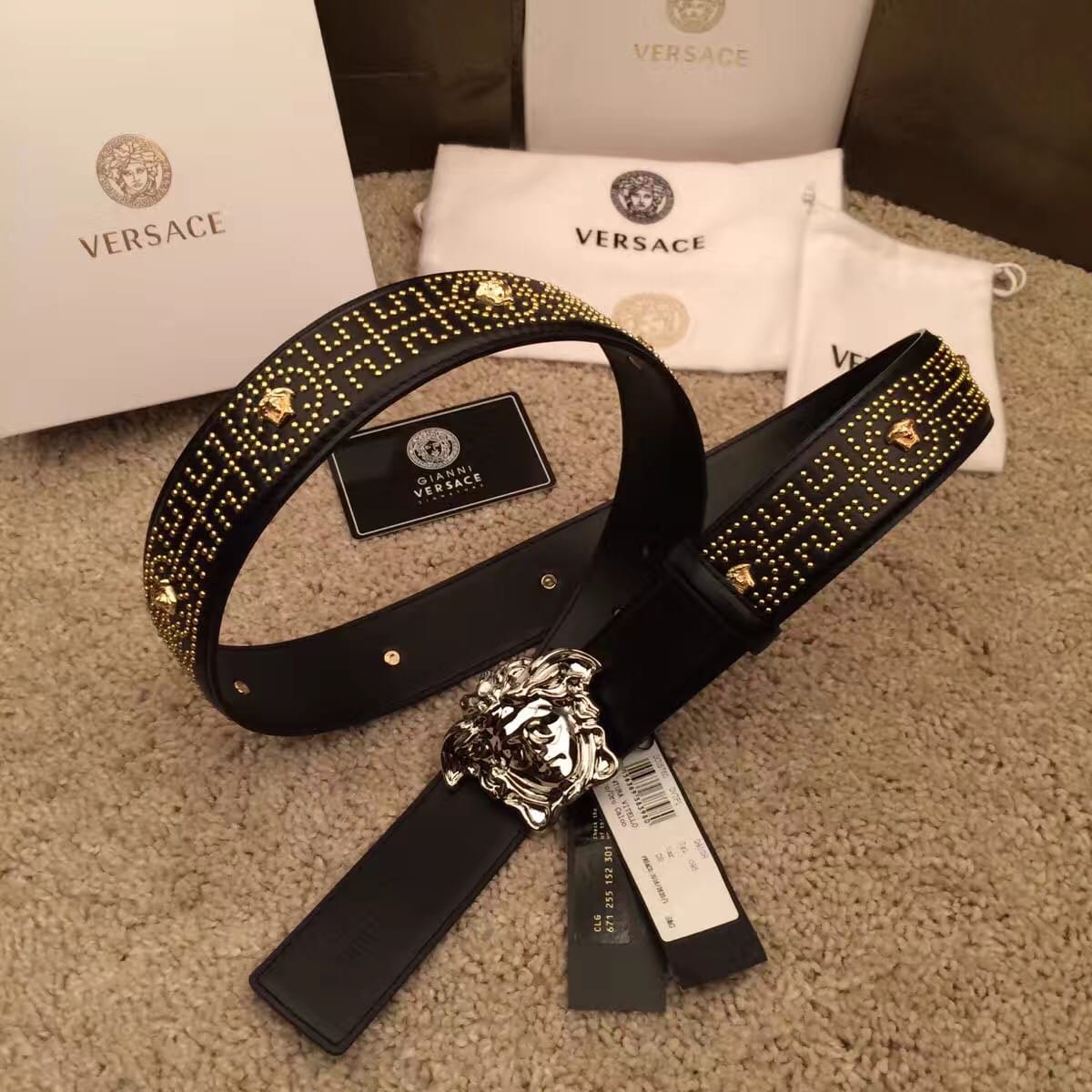 范思哲 银色美杜莎扣头 腰身满钉设计 个性时尚腰带
