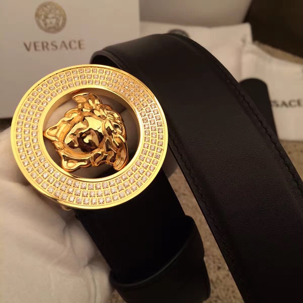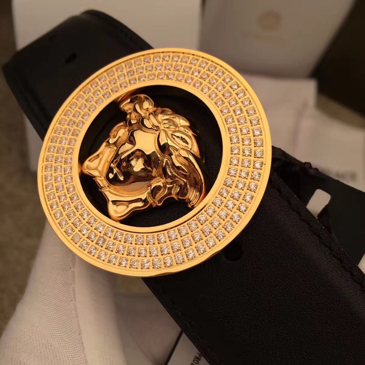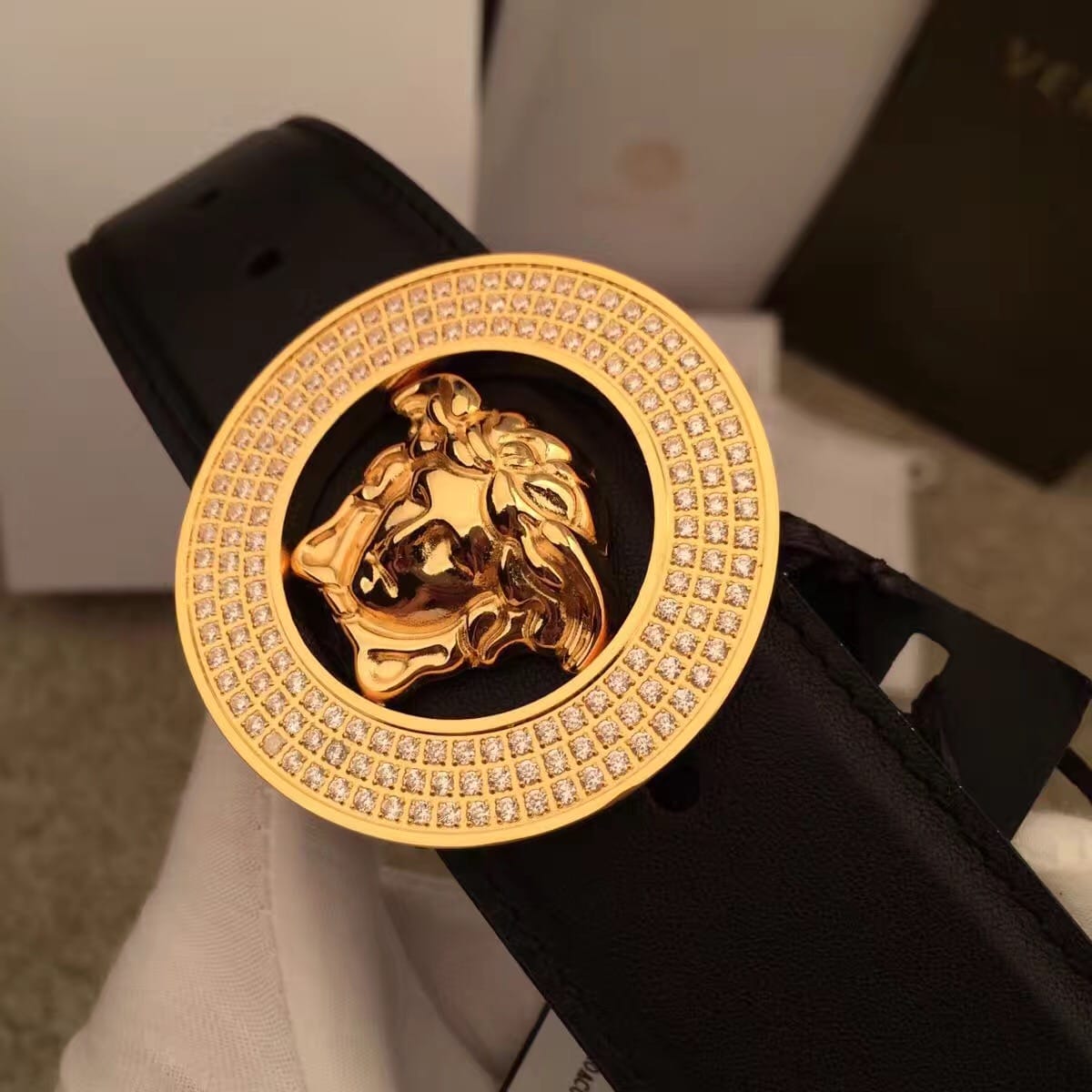 范思哲 VERSACE 美杜莎系列 满钻圆形钢扣腰带