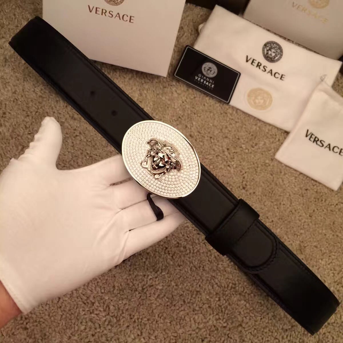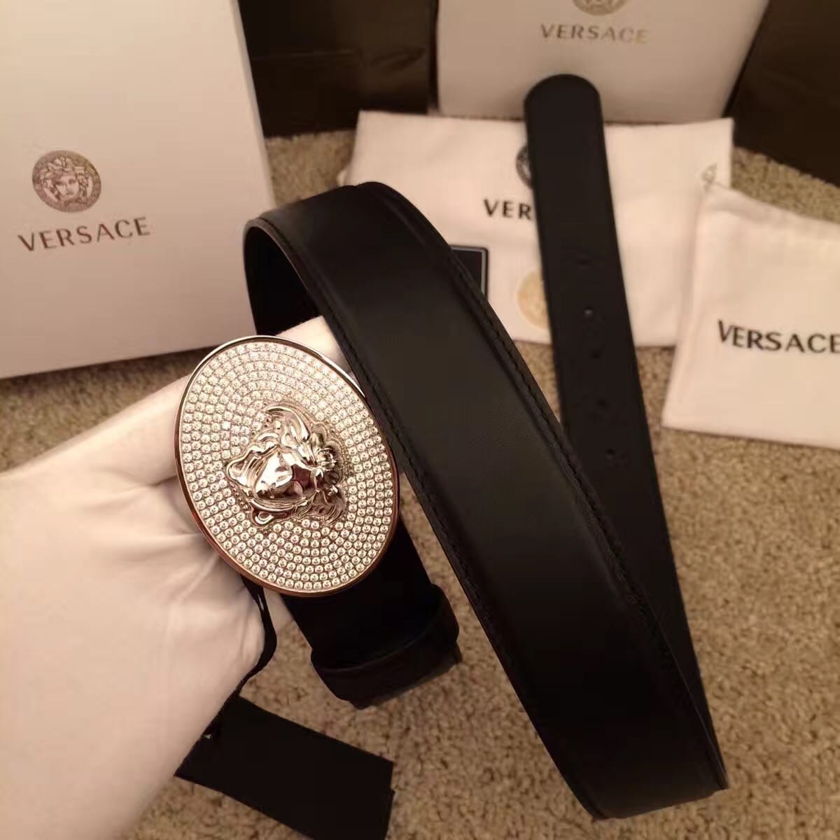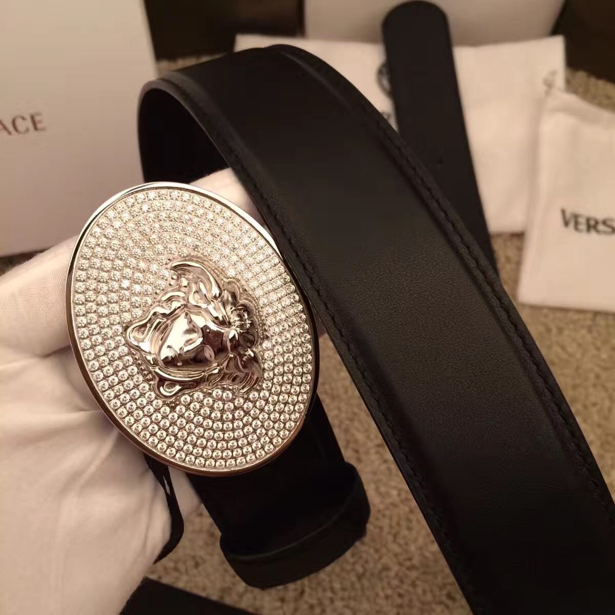 范思哲 VERSACE 美杜莎系列 满钻圆形钢扣腰带