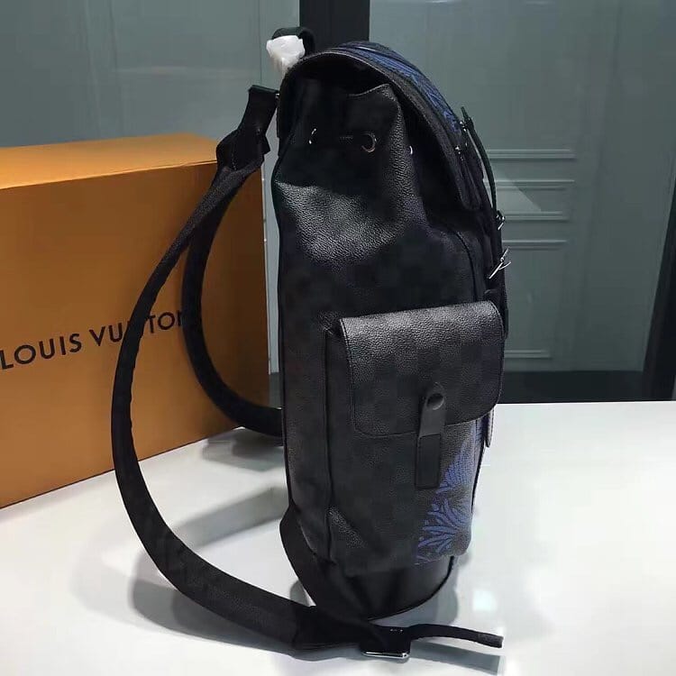 41709黑格最新红丝印??Christopher小号双肩包是一款外观充满力量和户外活力的多功能日常包袋,内部空间非常充裕,由饰有醒目绳索花纹的Damier Graphite帆布制作而成。风格迷人,品位上佳。专柜售价¥25900~尺寸:41.0 x 47.0 x 13.0 cm