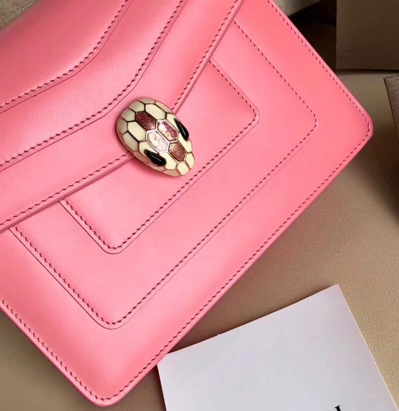 市场最好的工艺 Bvlga**新品 【Serpenti Forever系列】老佛爷限量款粉色油边 搭配粉色羊皮内衬 少女心爆棚?优雅与经典结合的马卡龙 简直心态要爆炸 尺寸 20*17*5cm