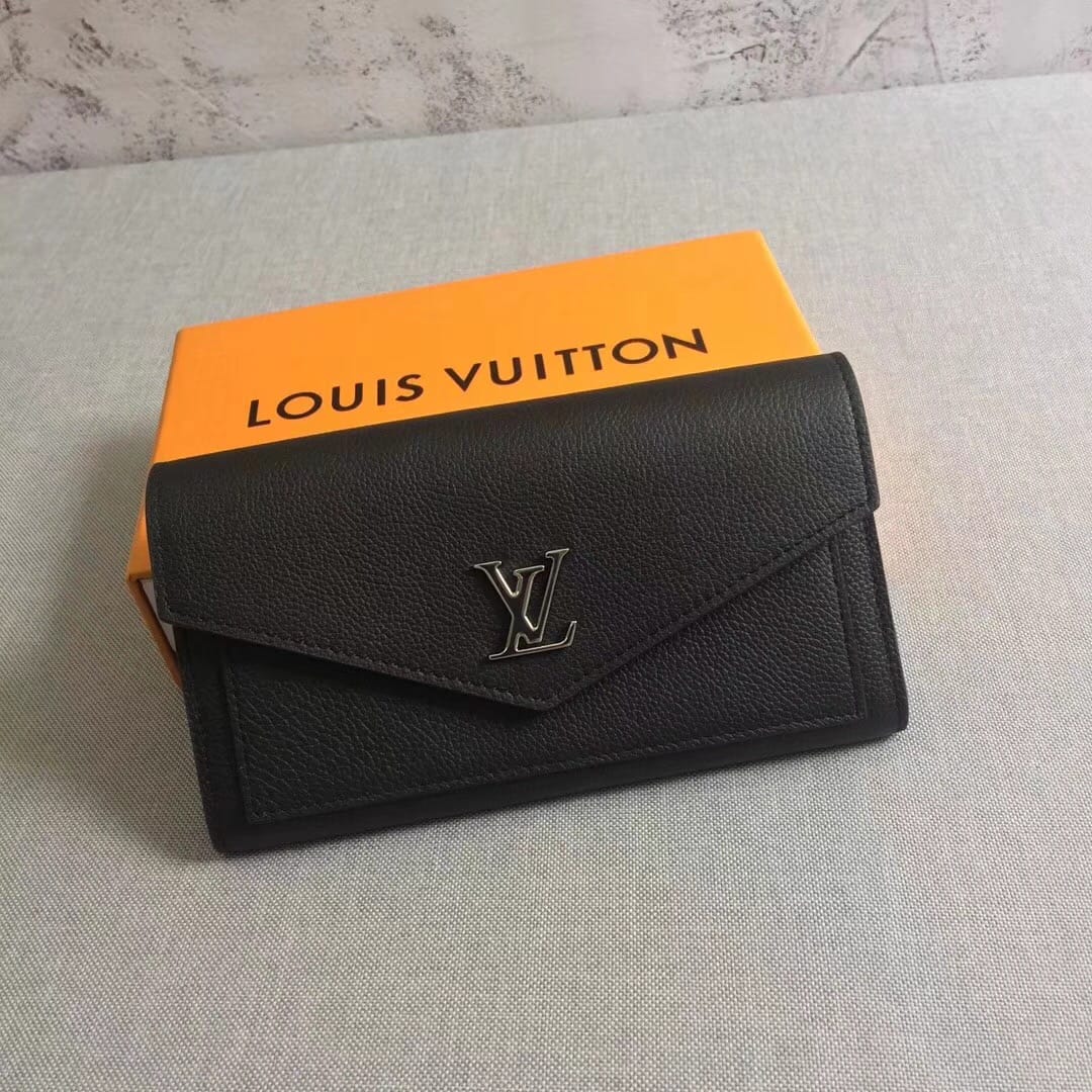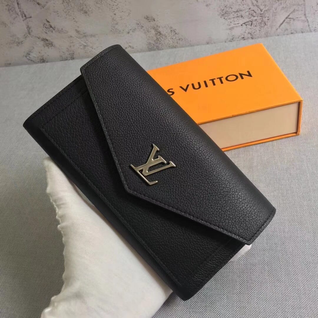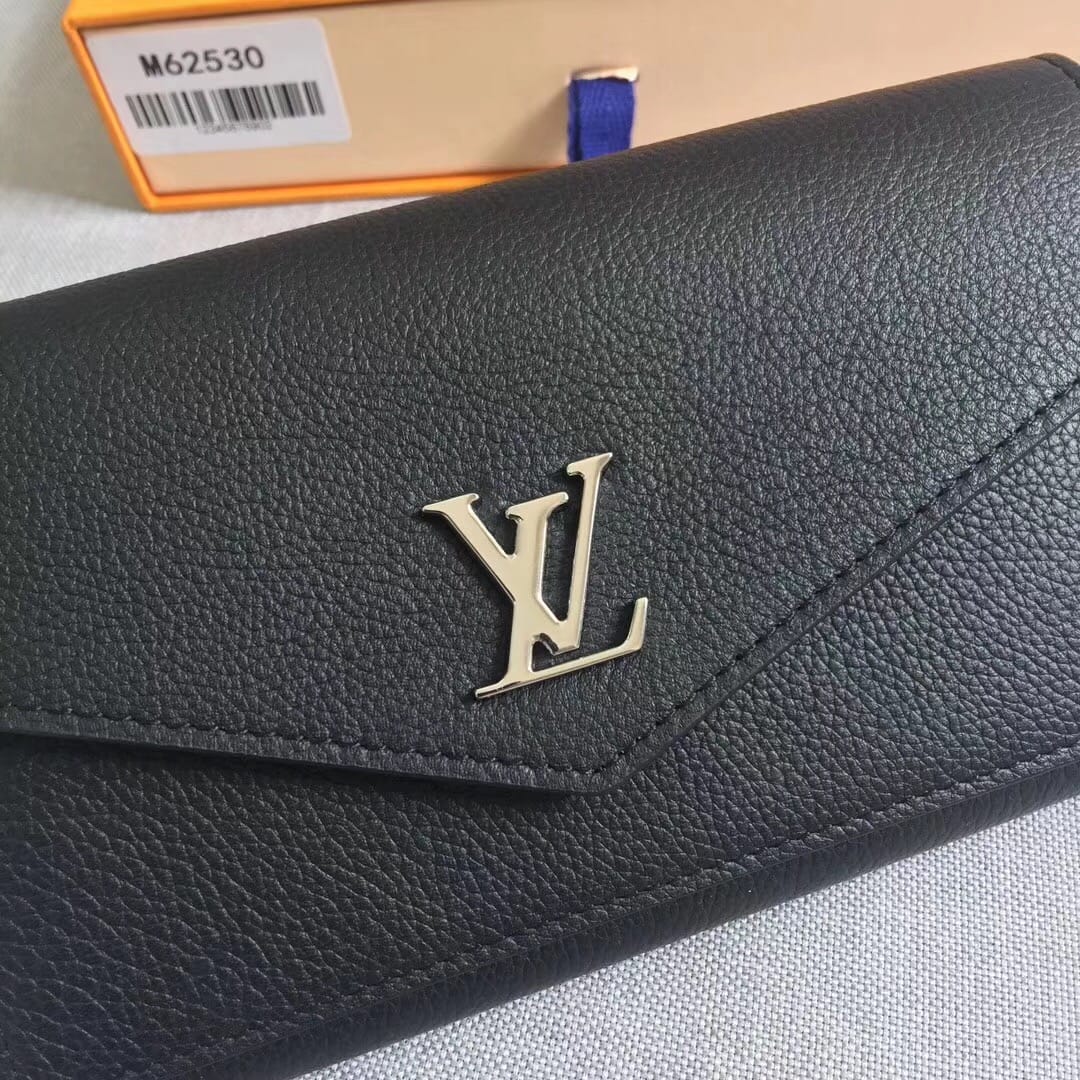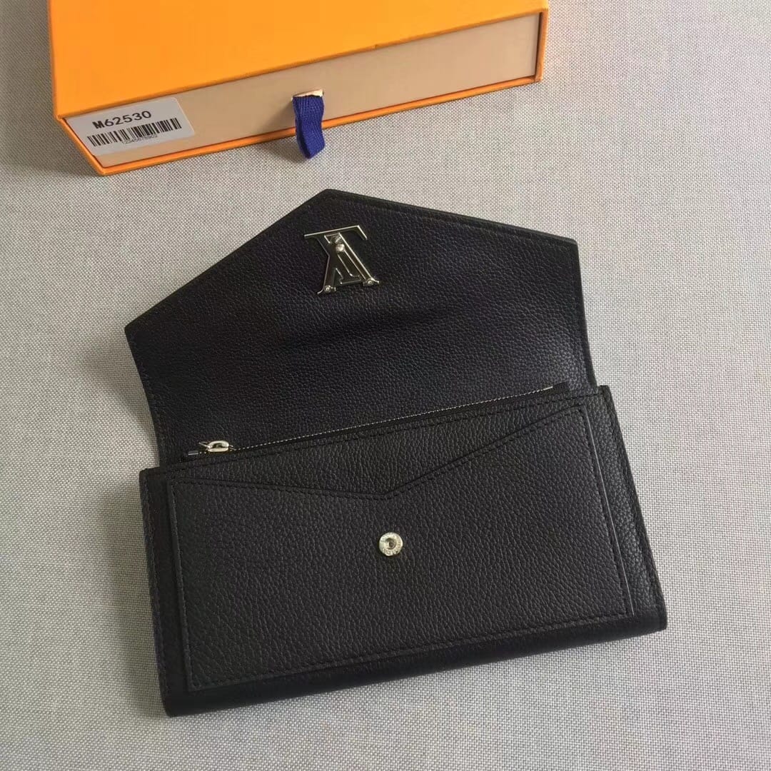 海外原单M62544独家实拍!由柔软小牛皮裁制而成的优雅Mylockme钱夹,呼应Mylockme手袋系列的明快设计。饰有LV字母的信封式搭盖,配有一对大号隔层与多个口袋,便捷实用。正面贴袋方便取用票券等物品。尺寸:19×10.5×3cm