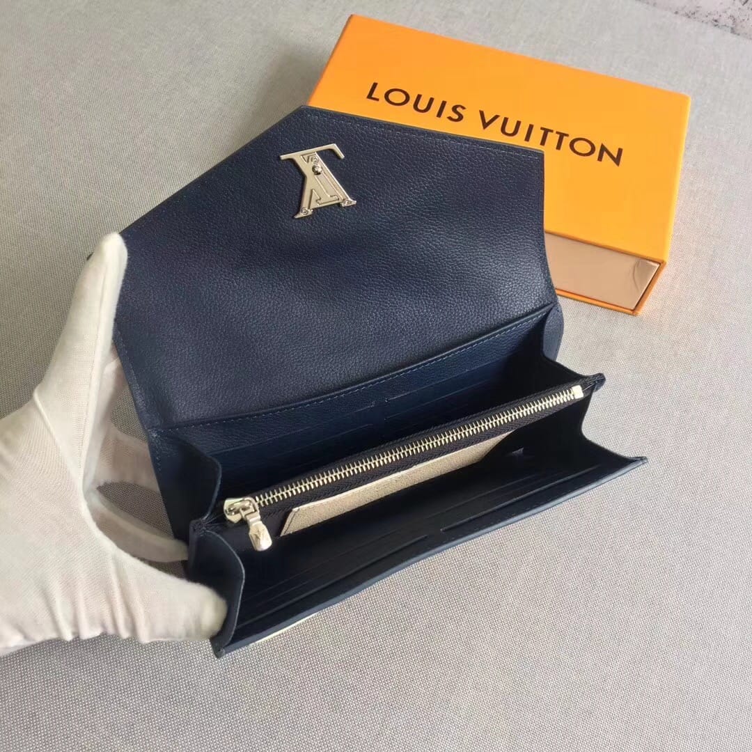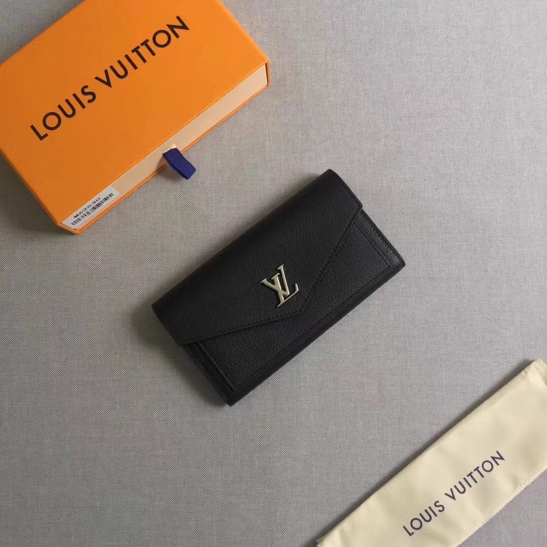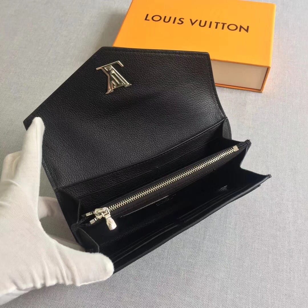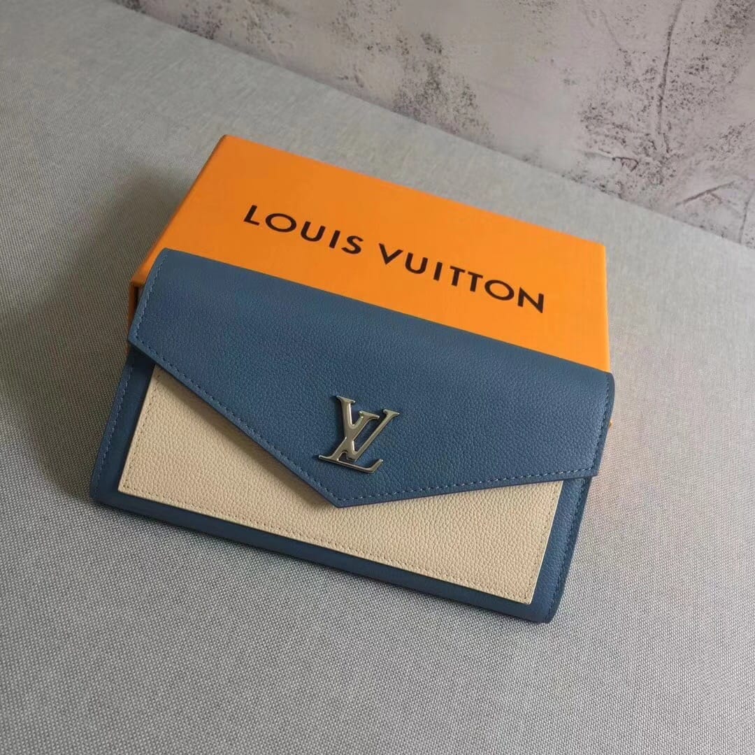 海外原单M62544独家实拍!由柔软小牛皮裁制而成的优雅Mylockme钱夹,呼应Mylockme手袋系列的明快设计。饰有LV字母的信封式搭盖,配有一对大号隔层与多个口袋,便捷实用。正面贴袋方便取用票券等物品。尺寸:19×10.5×3cm