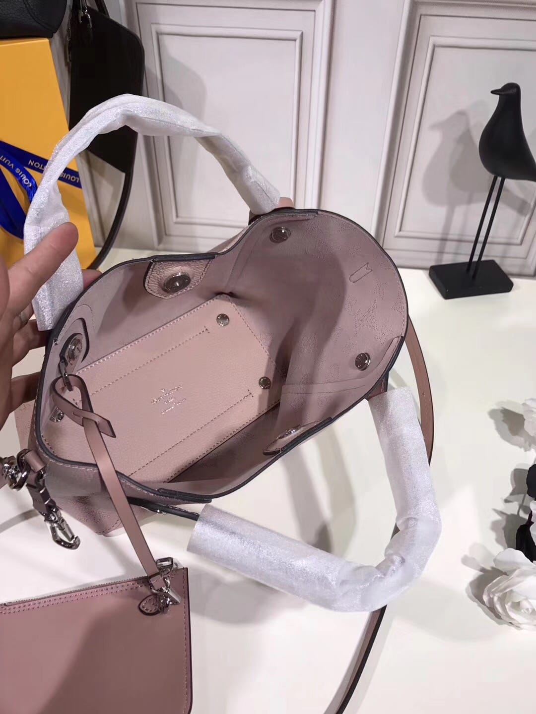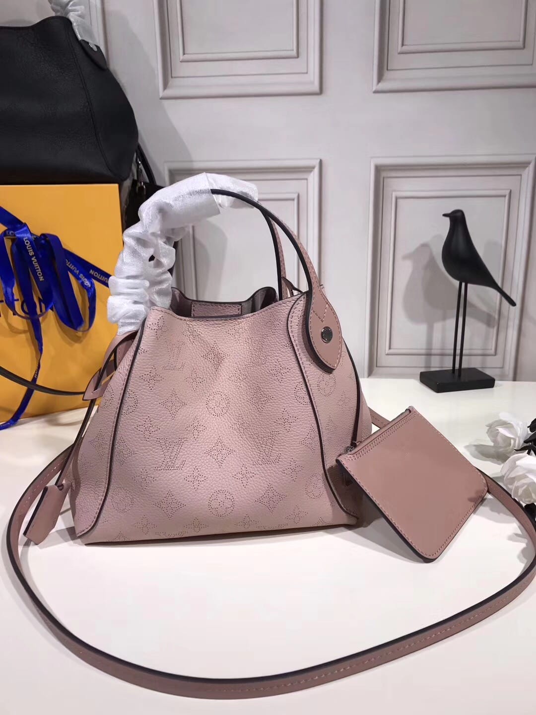 M54353木兰粉 采用双重设计的Hina手袋:包身正中配有弹簧扣,可折叠,可伸展,在Tote手袋与摩登水桶包之间自如切换。由小牛皮裁制而成并采用镂花装饰,轻质而舒适,日常背携的理想之选。小号尺寸,配有一条可拆卸包带,方便斜挎。详细特征34.0 x 18.5 x 13.0 cm (长 x 高 x 宽) - 7.2 x 13.4 x 5.1 英寸- Mahina镂花小牛皮- 小牛皮饰边- 超细纤维内衬- 银色金属配饰- 2个手柄,可手提,可手挎- 可脱卸、不可调节包带,方便肩背或斜挎- 内配可脱卸拉链袋,以细皮绳固定- 磁吸扣合- 外侧配有弹簧扣- 钥匙罩- 4个保护底钉![]() ![]() ![]() ![]() ![]() ![]() ![]() ![]() ![]() ![]() |