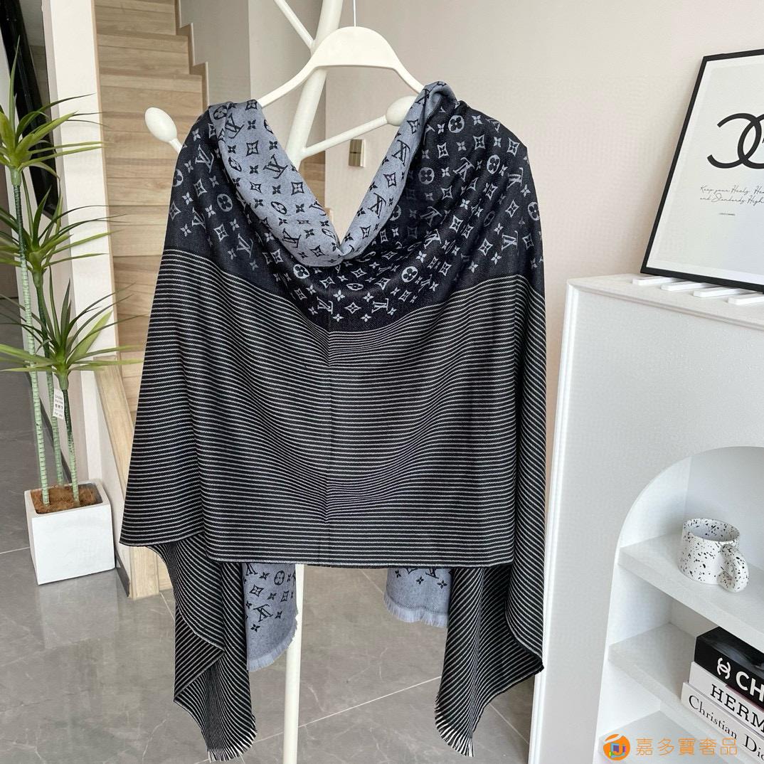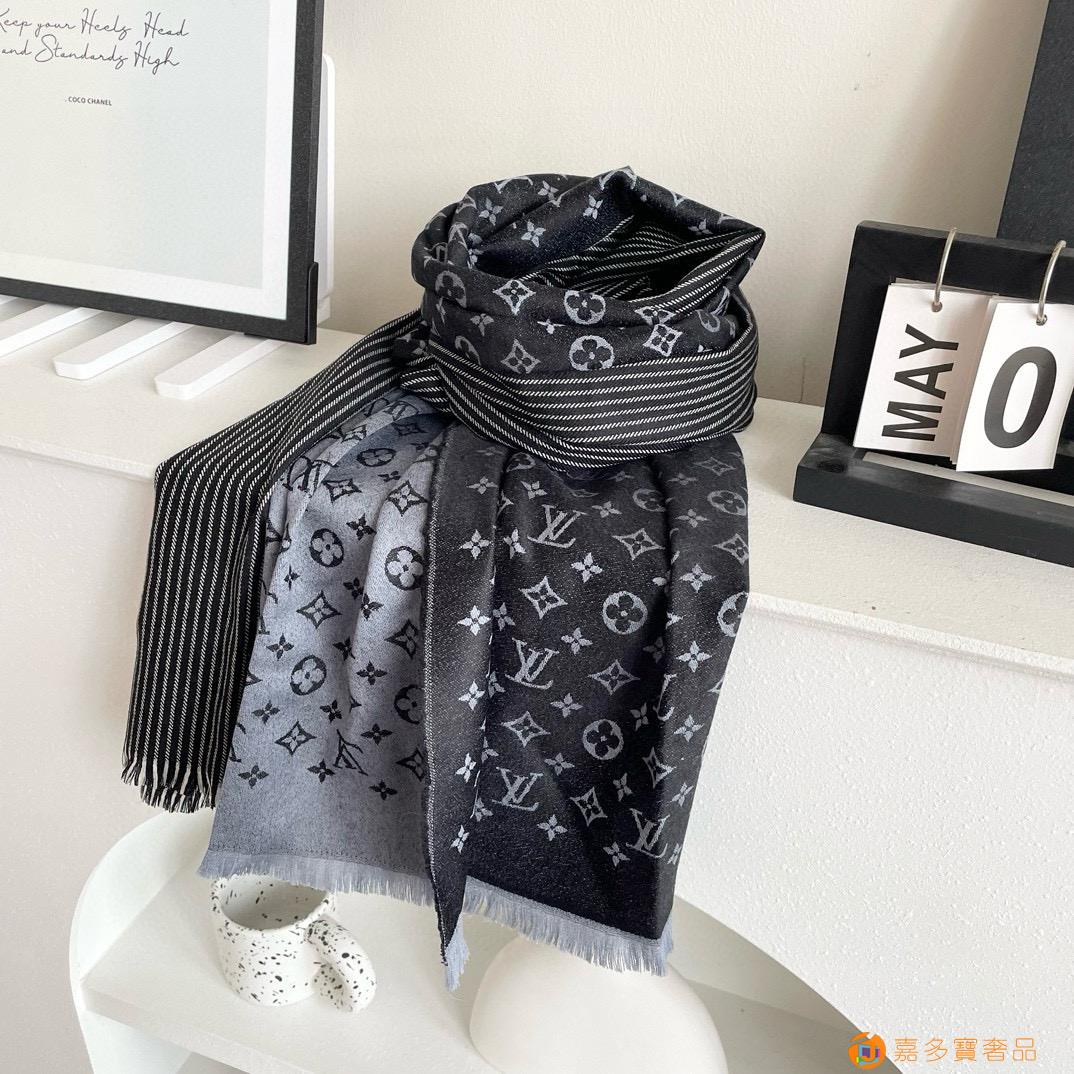 【围巾型号M】路易威登重磅原单,一模一样 LV专柜新色 出口境外。专柜的最新限量双面拼色‼️【限量版】品质极好,精工高密度字体无比清晰 面料为最顶级高原喀什米尔羊毛真丝(和专柜一样) 手感柔软丝滑 奢华有质感!?颜色搭配非常贵族色,对比强烈,非常养眼?这款披肩将真丝与羊毛相混搭,质地柔软而温暖 今年必火,速速入手 【* %真丝%羊毛】